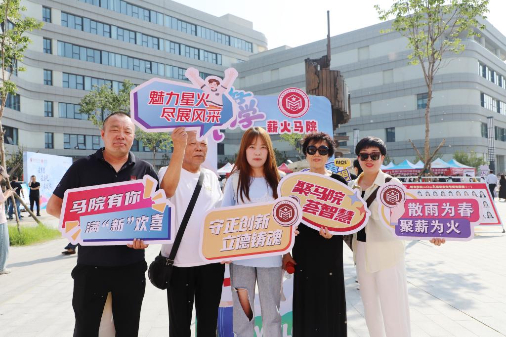 文学院志愿者身着飘逸汉服,向新生递上秋水文学社最新期刊,纸页墨香中传递文脉温度,还邀请新生参与投壶游戏,一同体验“礼乐射御”的古风雅趣;物理与电气工程学院将新生名字汇聚融合成“我爱物电”的字样,字里行间满是对新生的欢迎与期许;外国语学院设立了家长休息区,吉祥物“大橙子”在报到点迎接新生,志愿者们在家长休息区耐心解答疑问,并全程引导新生办理入学手续;资源环境与旅游学院设置了时光邮箱,供新生写下寄语送给四年后的自己,等待毕业那天重启这份“时光礼物”;传媒学院的“幸运转盘”人气满满,转动的指针不仅为新生送去定制好礼,更载着对新生的美好期许……