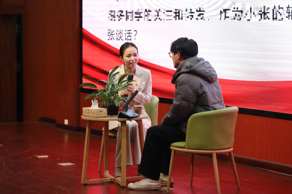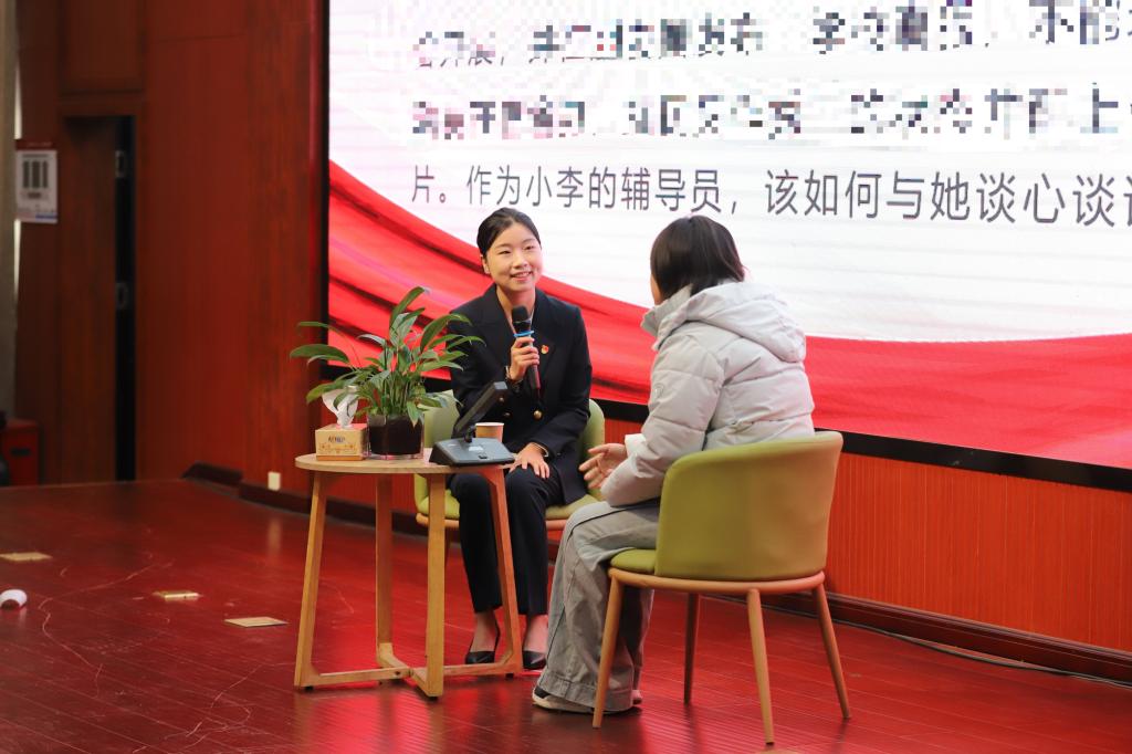 决赛分谈心谈话和学情分析两个环节。10位选手分别就学生思想政治教育、日常管理等方面的具体问题以情景再现的方式与学生开展谈心谈话。通过学生人像照片进行姓名、班级、政治面貌、宿舍、家庭住址等学情测试。